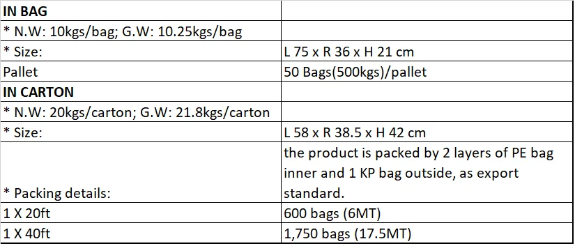 Max. Moisture (%) | 5 |
