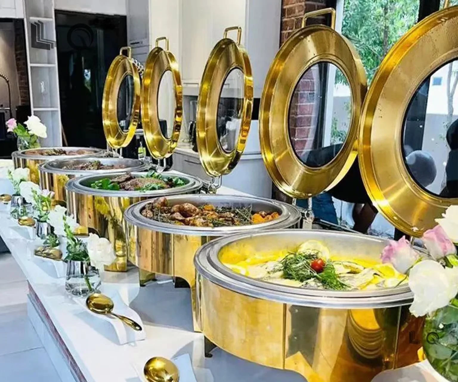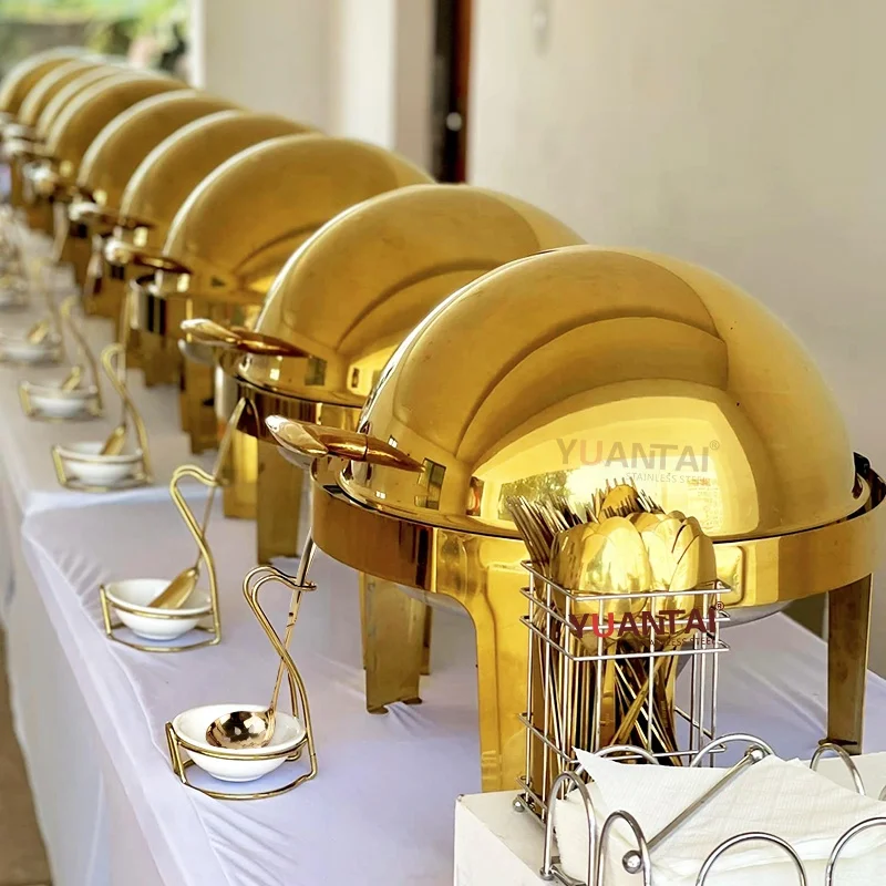 Роскошные арабские Золотые круглые стеклянные крышки для буфета рестораны большая нержавеющая сталь грелка еды
