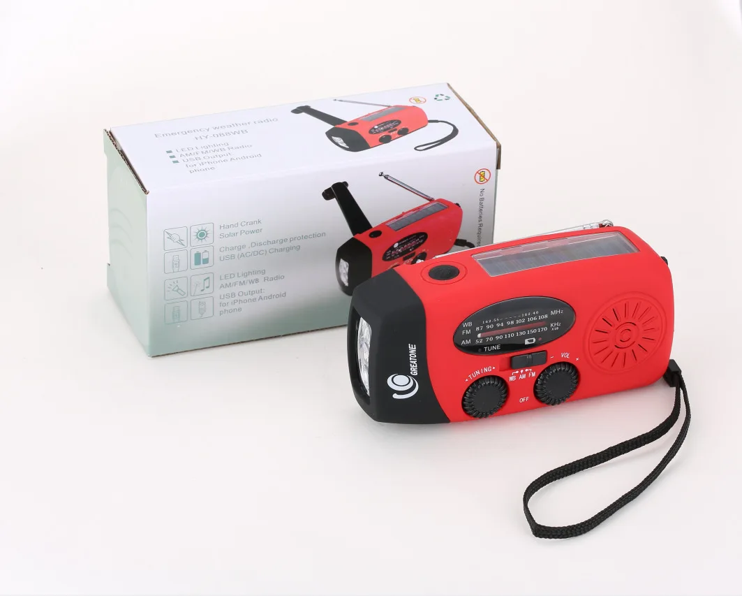 Аварийное погодное радио AM FM NOAA солнечное заводное с SOS 2000 мАч внешний аккумулятор для сотового телефона и светодиодный