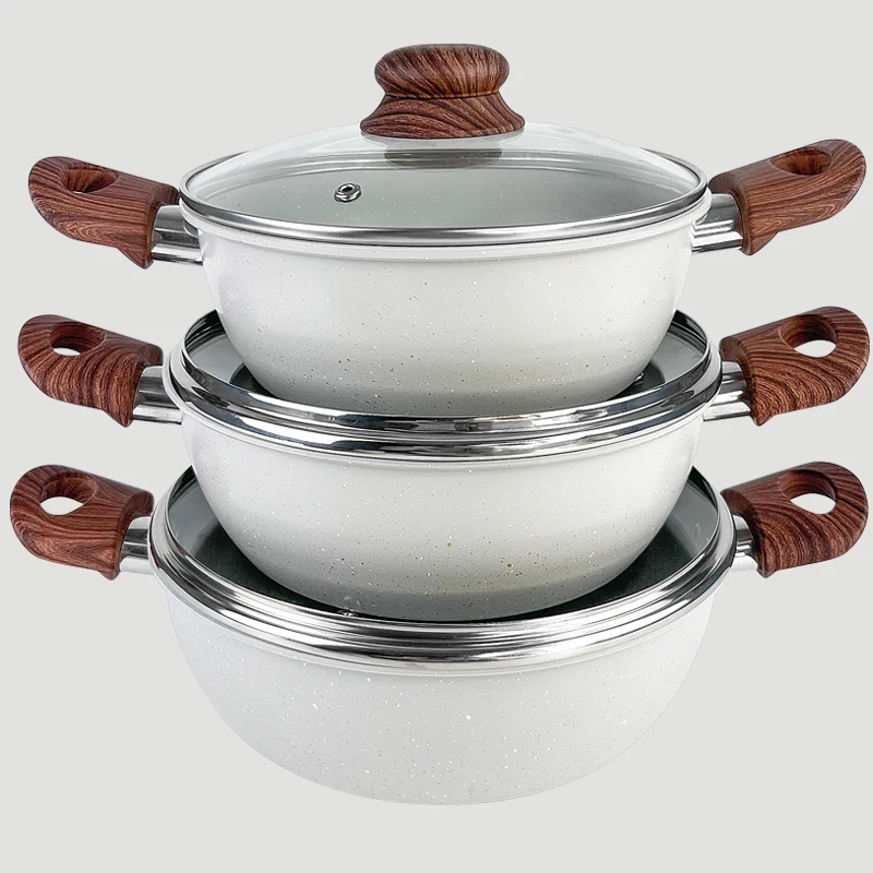 Набор посуды с мраморным покрытием, съемная ручка, кованый алюминий