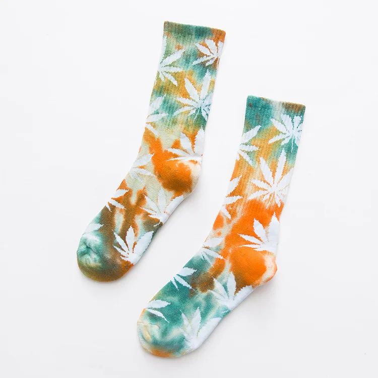 Оптовая продажа, хлопковые мужские носки с половинным кольцом и крашеным Кленовым листом