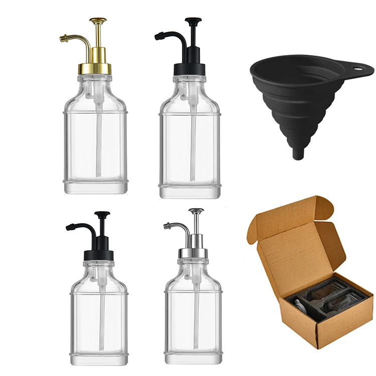 Многоразовые квадратные стеклянные бутылки 16 унций 4 набора кухонный дозатор мыла для кофейного сиропа с золотым насосом 55,21 ₽ - 236,27 ₽