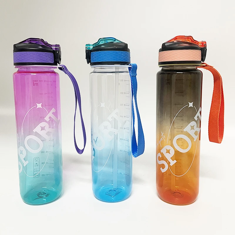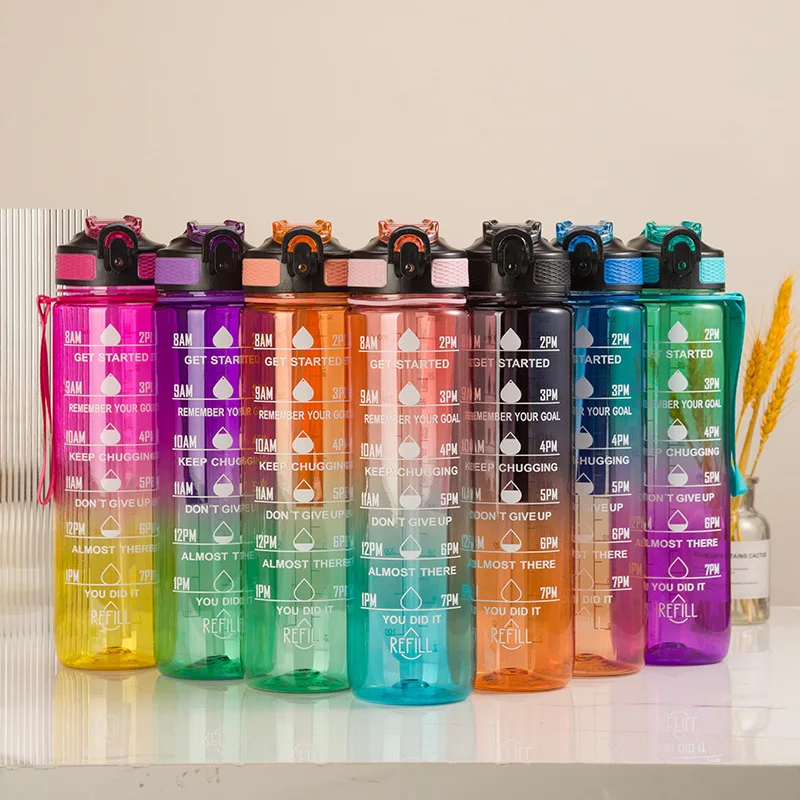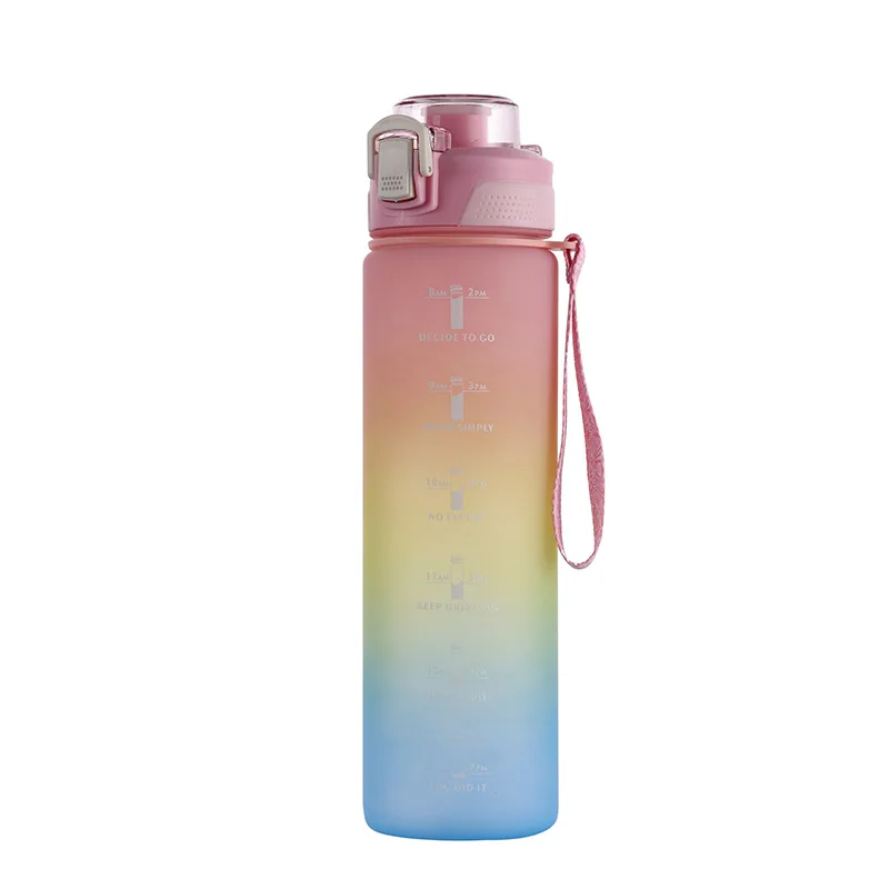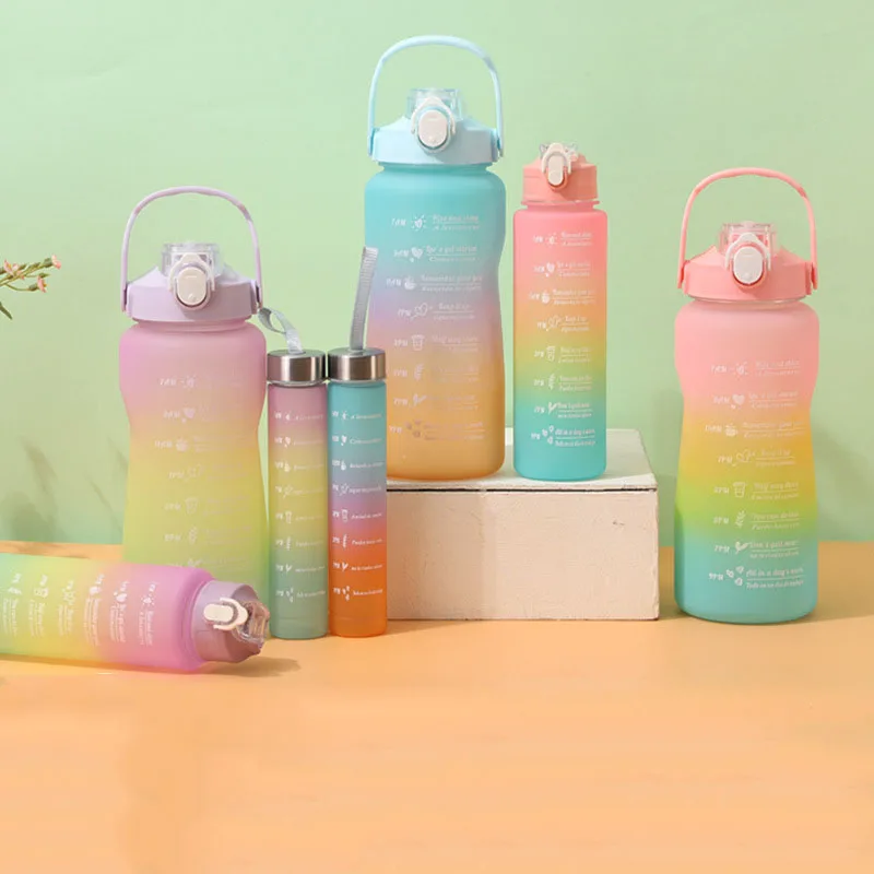 Большая емкость 3 в 1 Мотивационная бутылка для воды градиентный цвет матовые пластиковые бутылки спортивных напитков с маркером времени