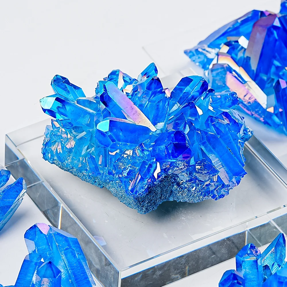 Натуральный синий аура кварцевый кластер Кристалл титановый образец чакра Специальный Элегантный высококлассный ювелирный орнамент украшения