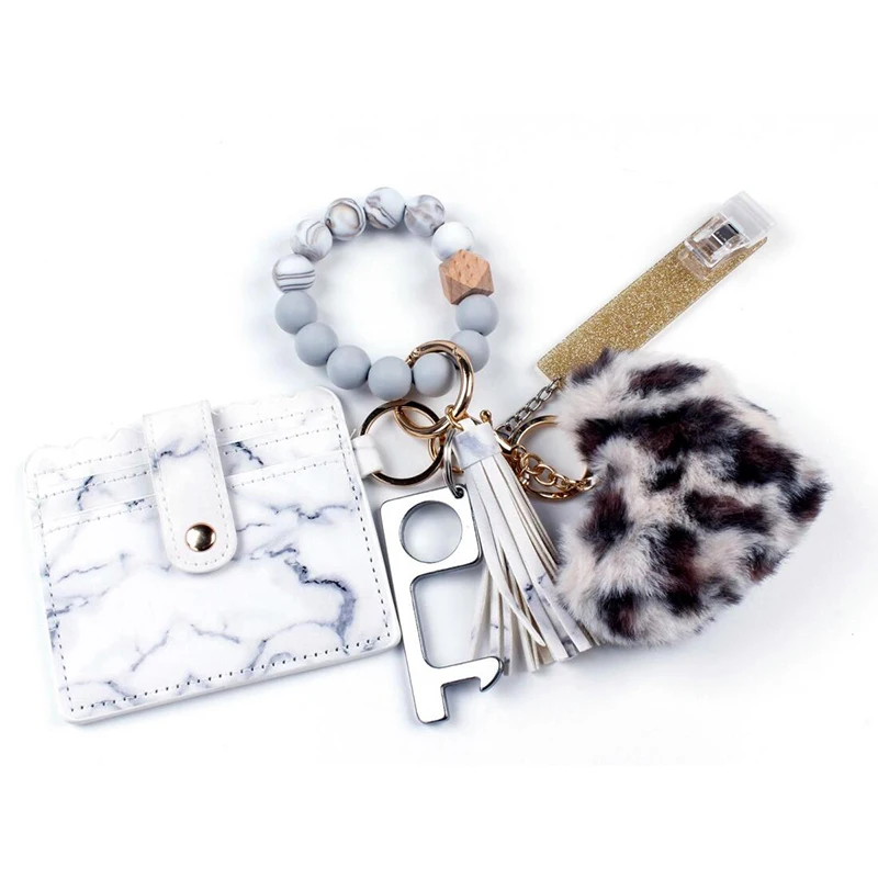 Силиконовый браслет с бусинами кольцо для ключей держатель карт 4 набора брелок подходящим ремешком на руку кошелек и