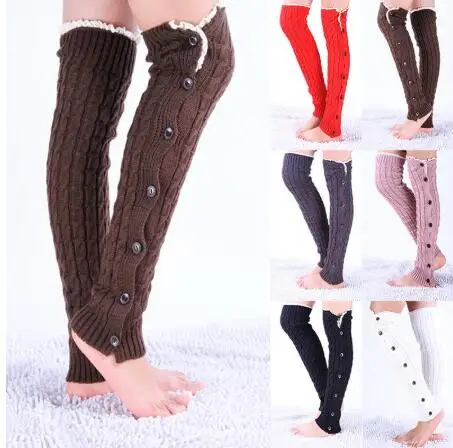 M1298 Winter Thick Long knitted High Over The Knee Socks pom leg warmers for women