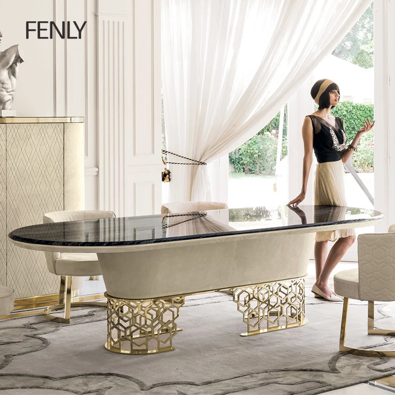 Итальянский роскошный 8-местный обеденный стол высокого класса современный мрамор из нержавеющей стали для дома отеля кухни элегантная деревянная мебель