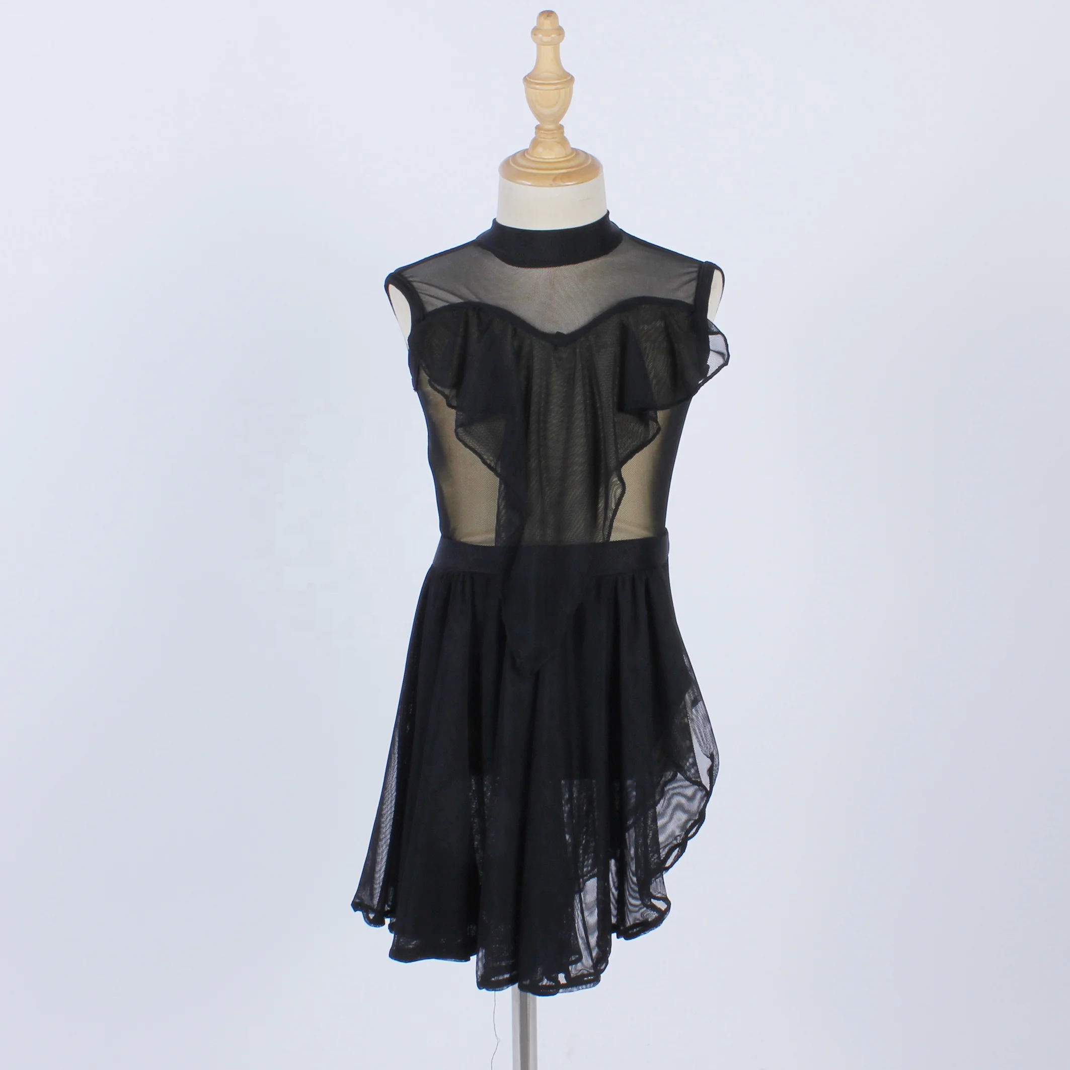 Женское платье для латиноамериканских танцев черное из мягкой эластичной сетчатой ткани элегантное трико выступлений и