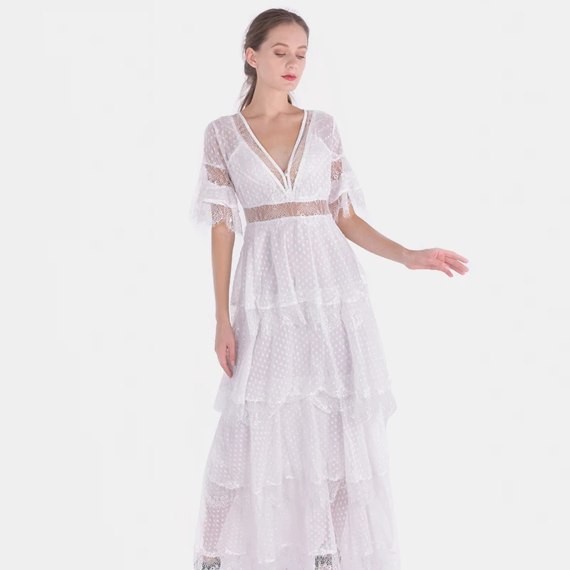 Новинка 2020, кружевные платья без рукавов с V-образным вырезом, женская модная одежда, вечернее платье с юбкой-годе
