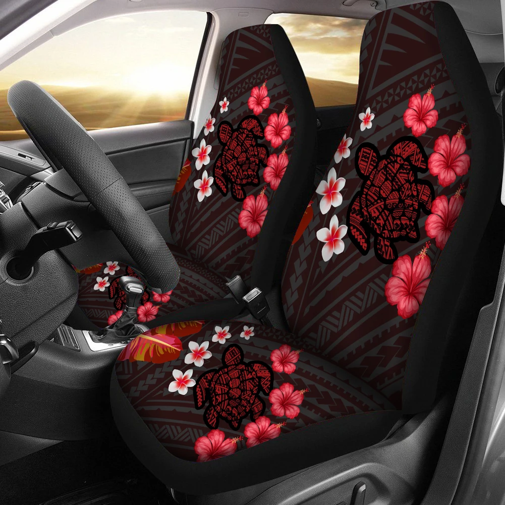 2 шт. Funky Hibiscus Polynesian Turtle Samoan Style Pattern красный/черный универсальные чехлы для автомобильных сидений подходят автомобилей SUV Truck Custom 3D