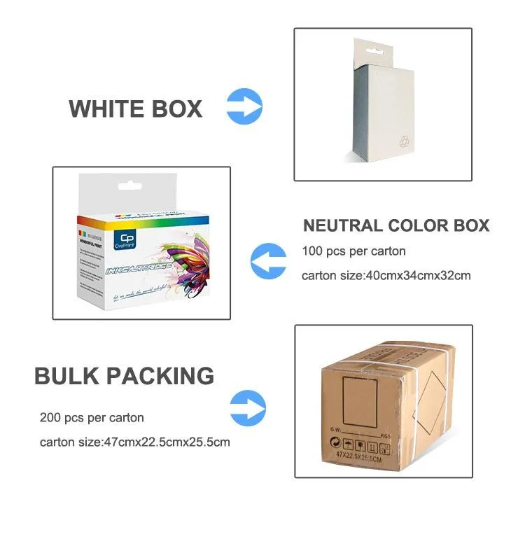 A: We can offer the ink cartridges almost covering all types with high quality, and we can receive customized special products or packages.