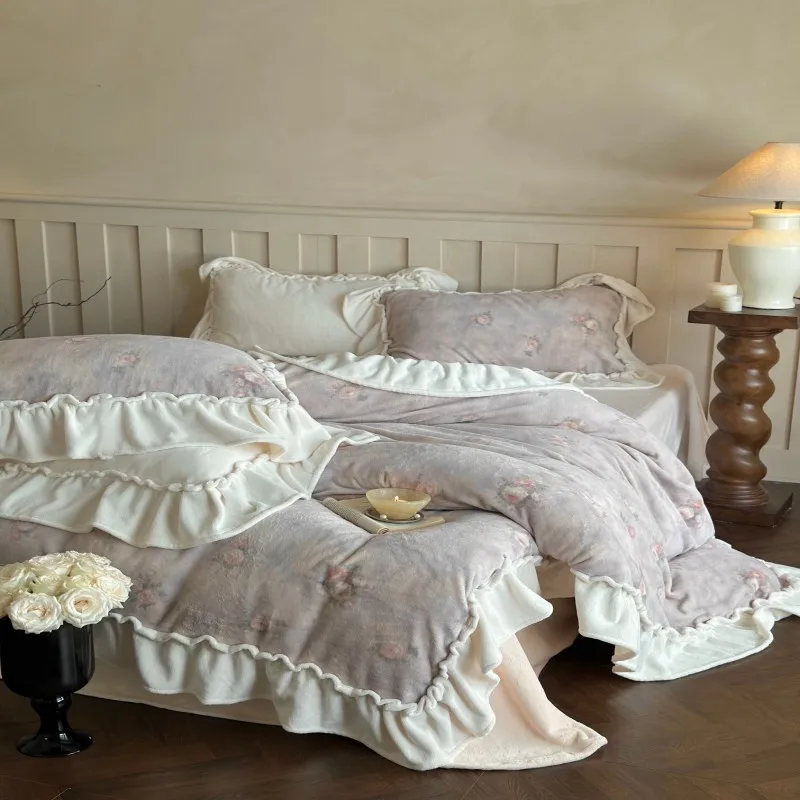 Производство тканой простыни из хлопка элегантный комплект постельного белья с кружевным