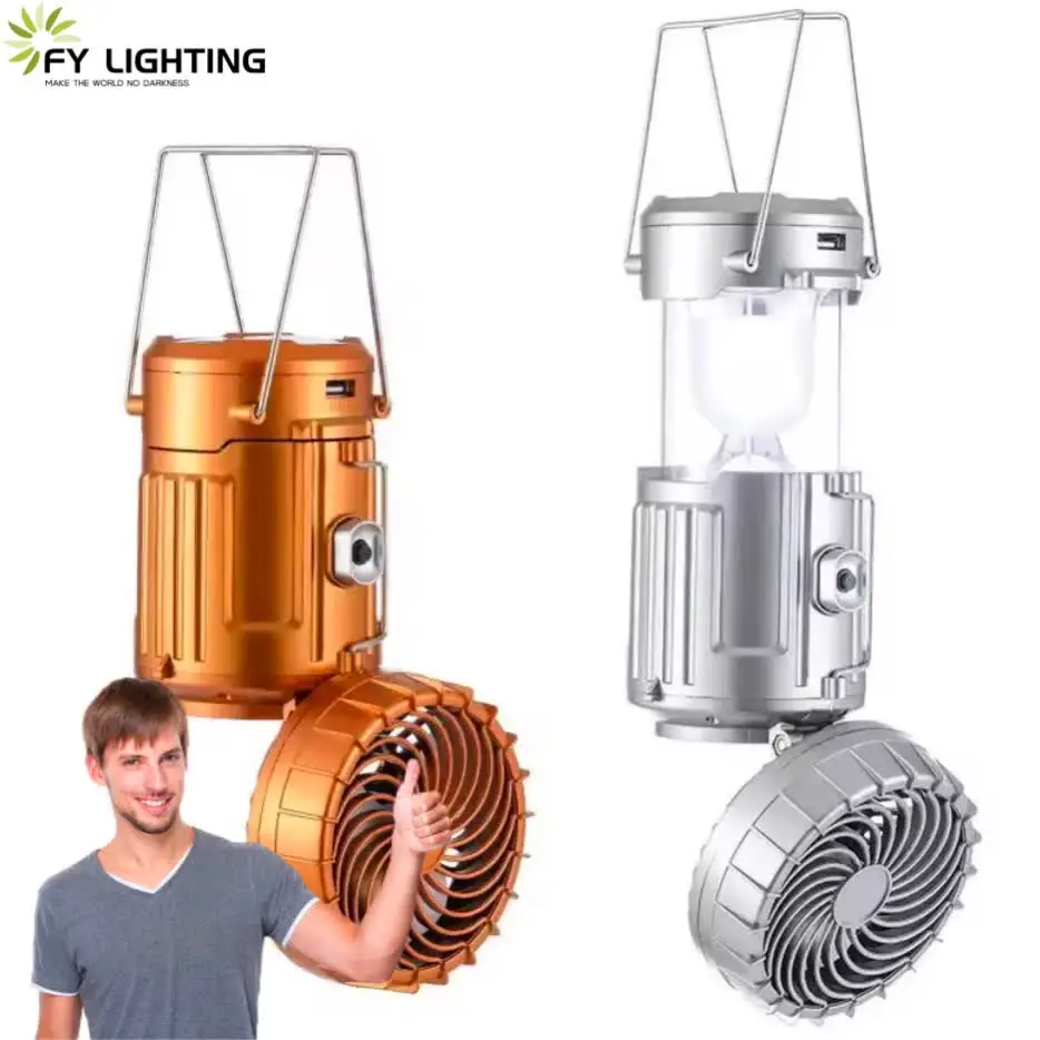 Водонепроницаемый портативный светодиодный перезаряжаемый свет Открытый Сад Солнечный кемпинговый фонарь с вентилятором