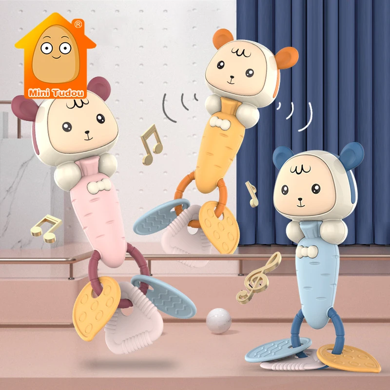 Детская погремушка мягкая резина колокольчик с персонажами из мультфильмов футболка с кроликом и морковкой, Прорезыватель для зубов встряхивания Jingle игры Игрушки для раннего развития детей подходят для малышей от 0 до 12 месяцев