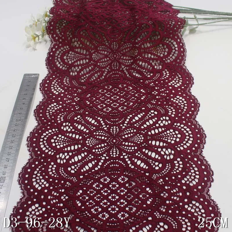 Поставщик фабрики, мягкое винное эластичное кружево 25 см, Высококачественная эластичная кружевная отделка для аксессуаров одежды