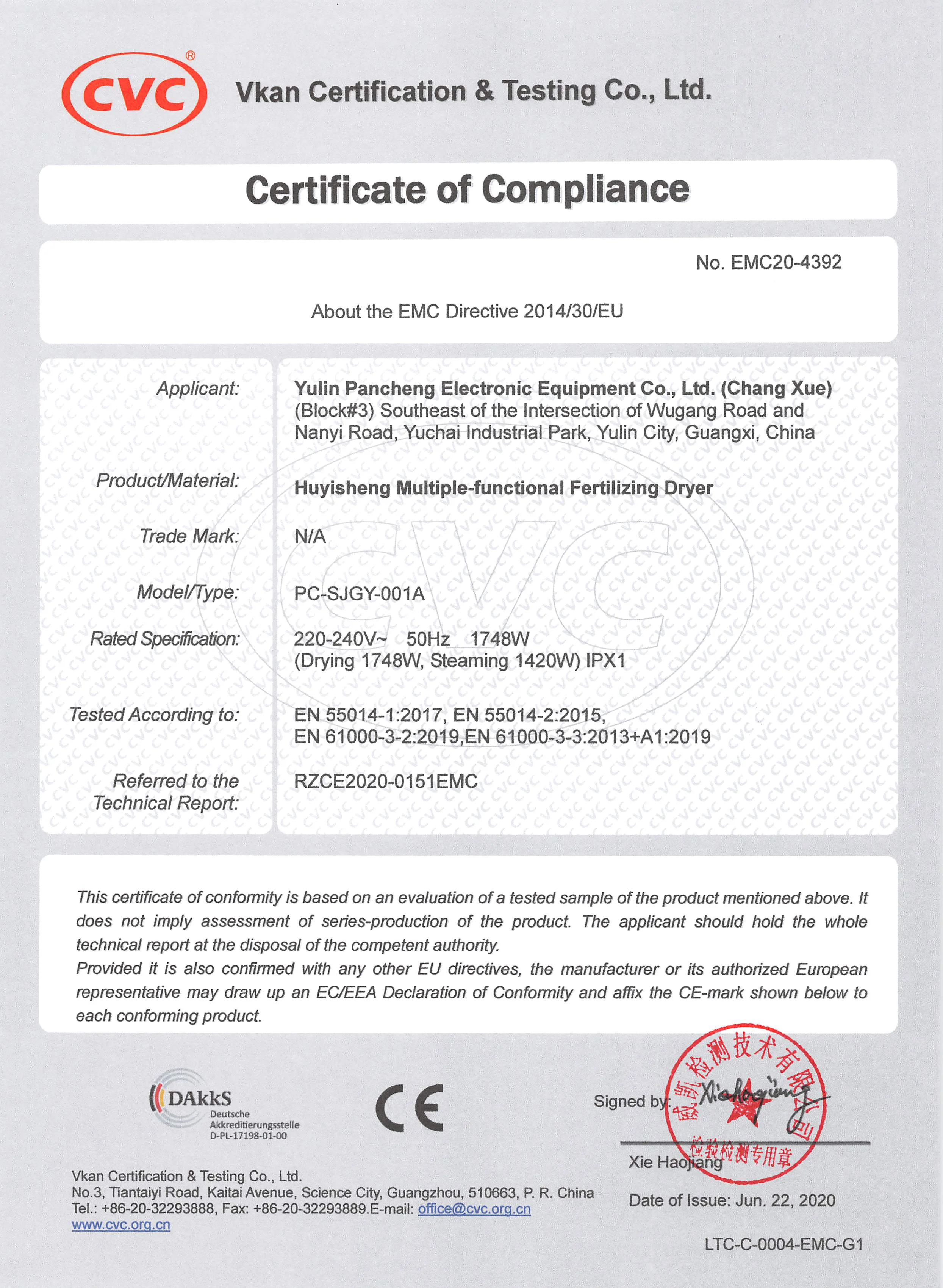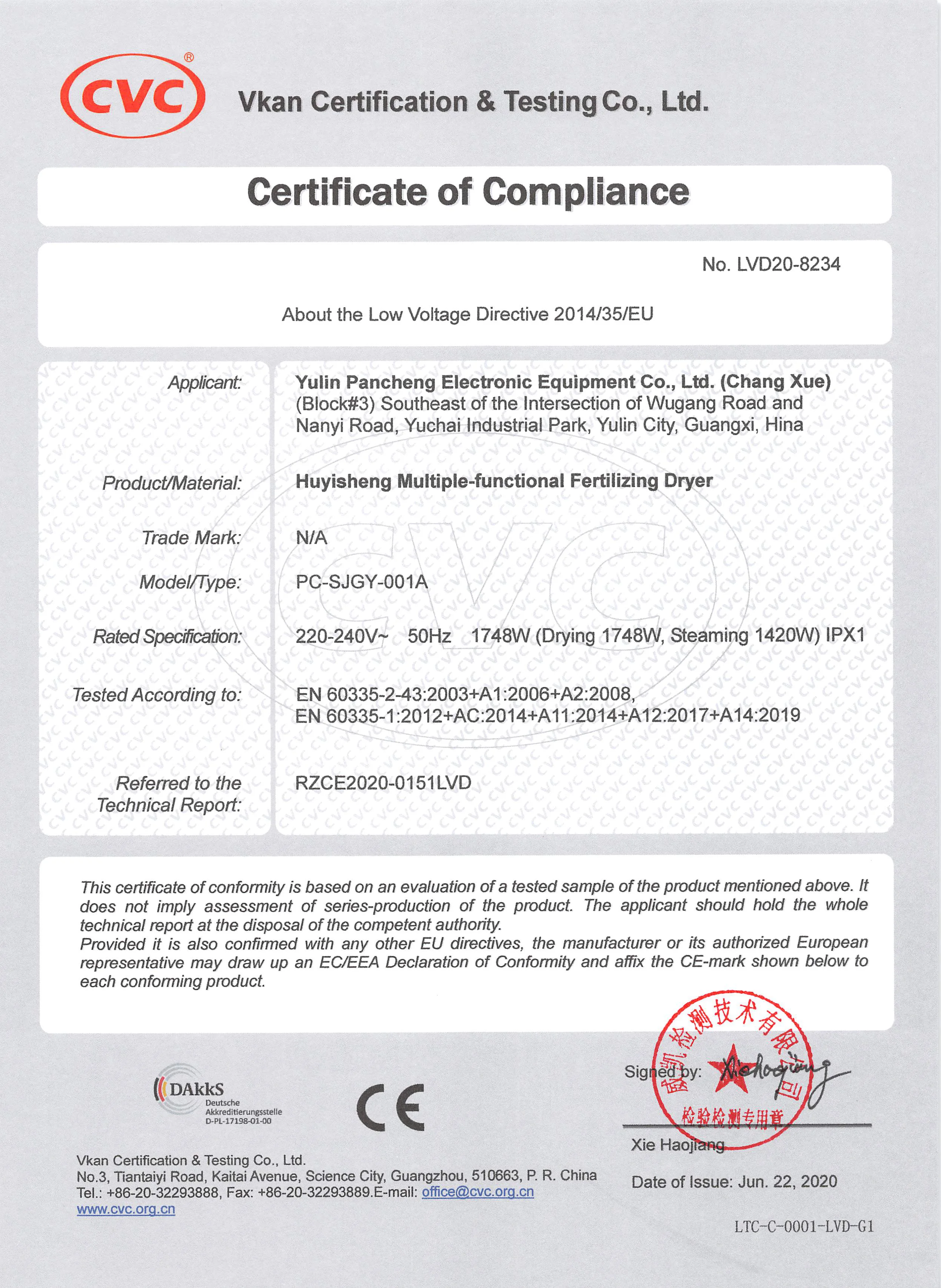 Certificate | CE(LVD), CQC, EMC | ||||