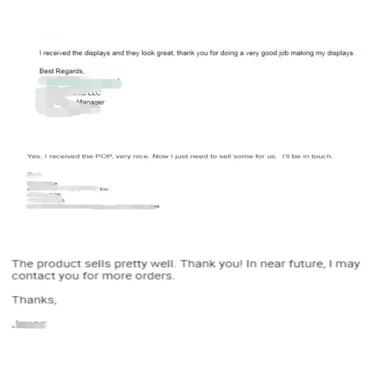 Business is not just the product, but also the service. I would like to provide the good service with our professional suggestions, good proposal, together with our good products. That is why I am in the metal display racks for supermarket ,retail shop etc. Because all the metal display racks are customized, the clients need my professional suggestions. Via the communication, they could see my profession and my dedication. We could be friends.
