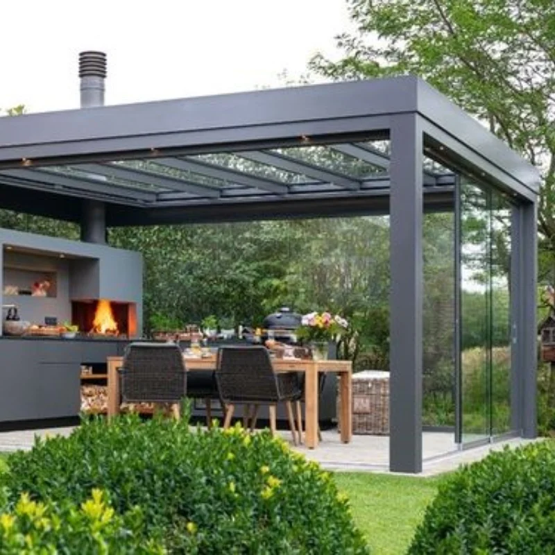 Dark grey steel frame, two entrance sliding door