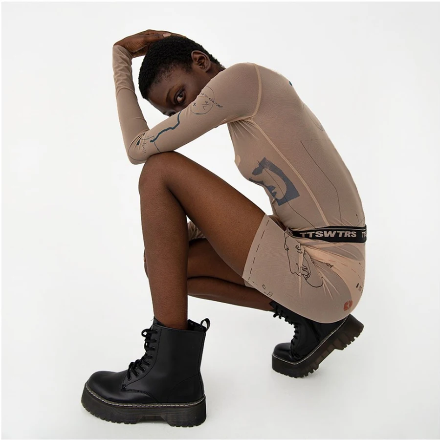Облегающие пикантные колготки Kliou K20S11222 с высоким воротником из двух частей + Широкополосные шорты для улицы и отдыха