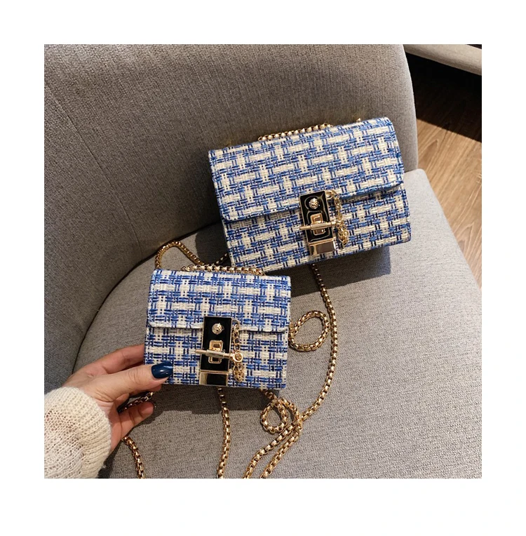 Дизайнерские женские сумки через плечо с замком модные мессенджеры из твида цепочками плетеная дамская сумочка