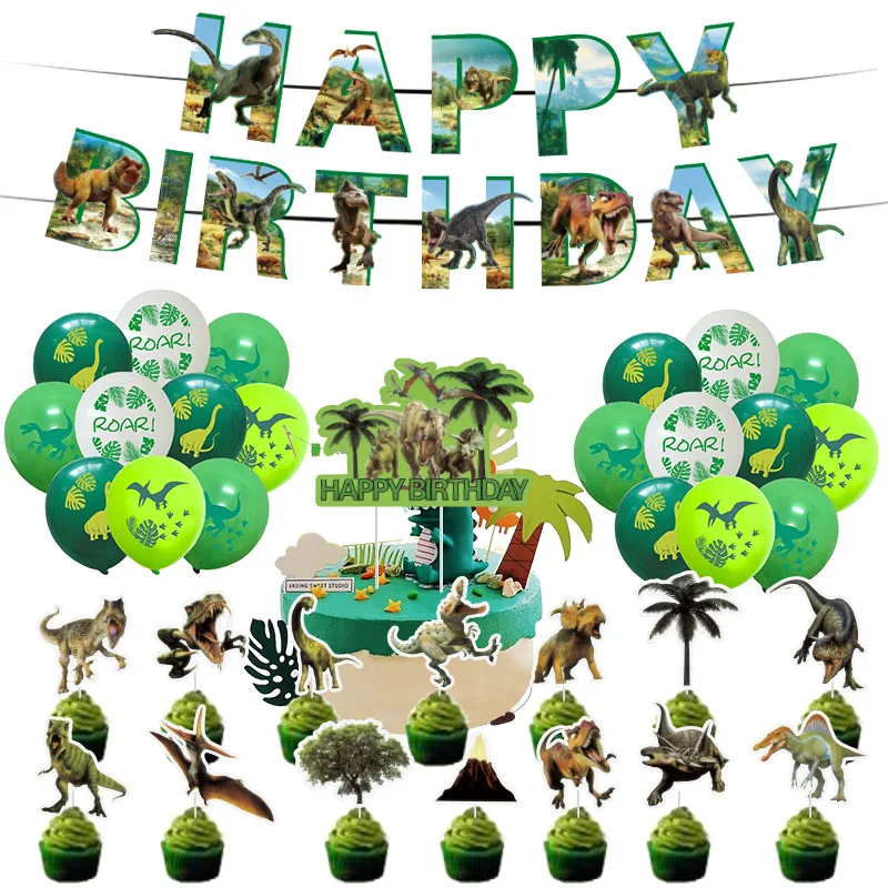 92 шт. набор украшений для вечеринки в честь Дня Рождения динозавра включает воздушные шары баннер фон бумажный веер Шторы детей