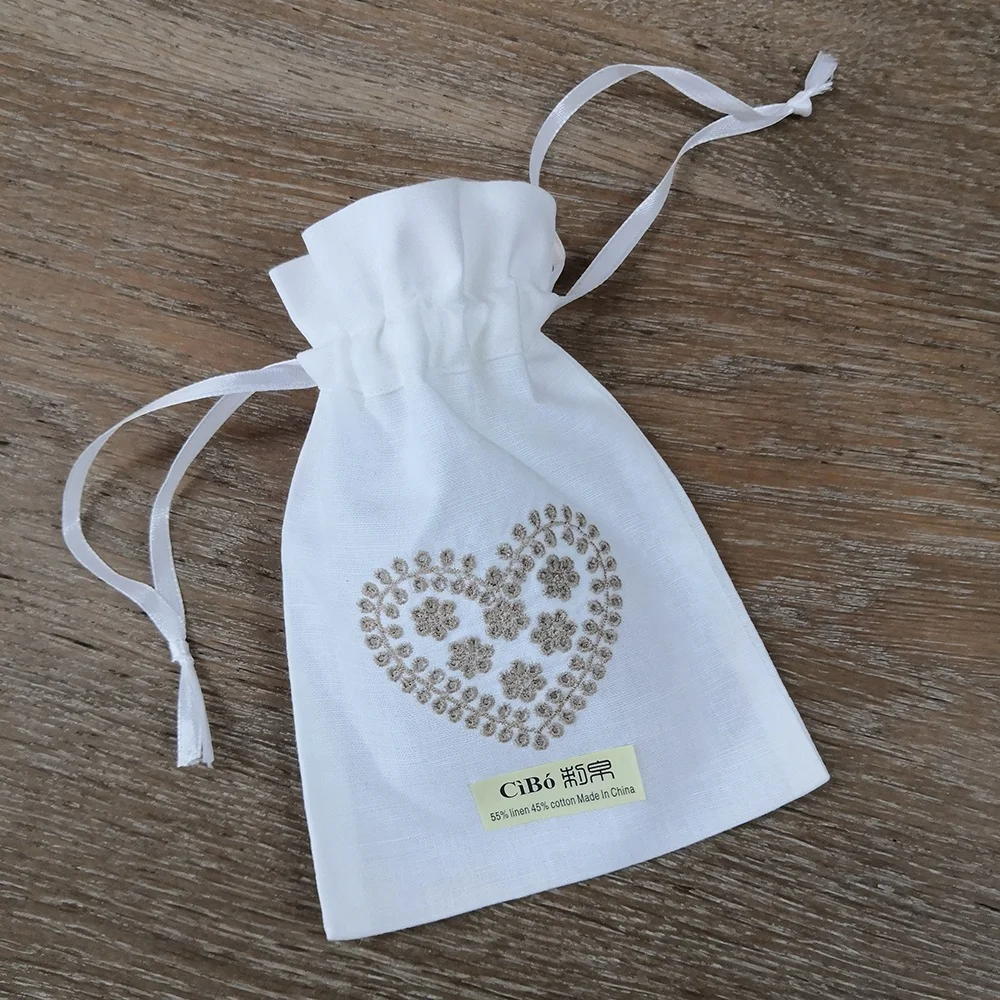 B026 белая льняная хлопковая вышивка в форме сердца, вышивка 5 дюймов x 7 дюймов, саше для хранения, Подарочная сумка на шнурке