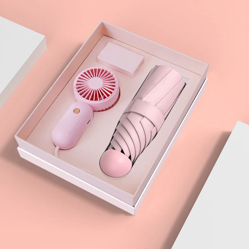 760 дизайн USB перезаряжаемый портативный мини-вентилятор с дождевым УФ-зонтиком рекламирует бизнес-подарочную коробку на заказ зонтик подарочный набор 1