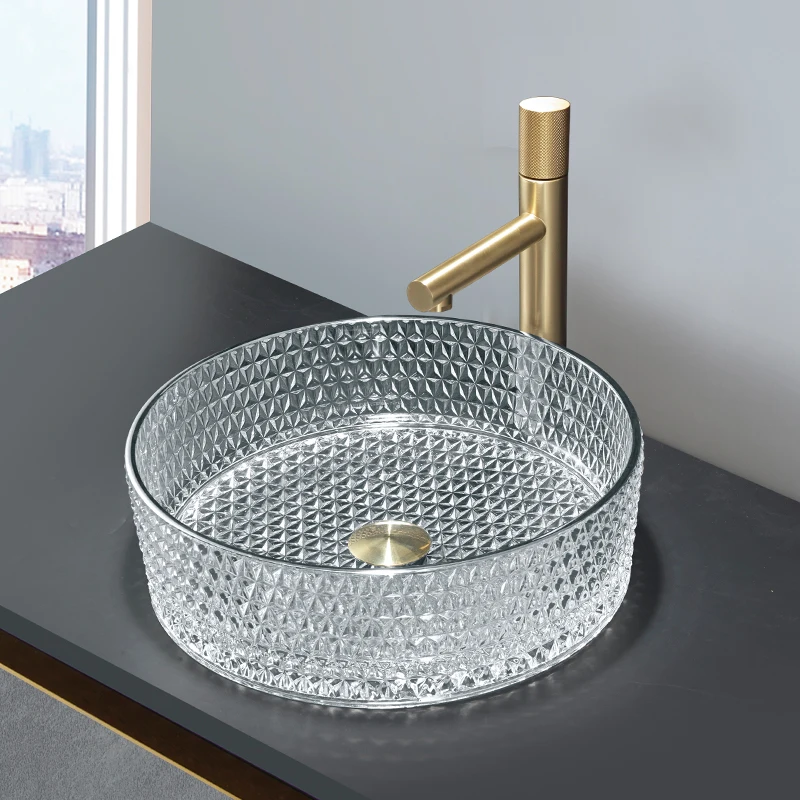2023 Роскошная раковина из хрустального стекла круглый красочный алмазный сосуд умывальник