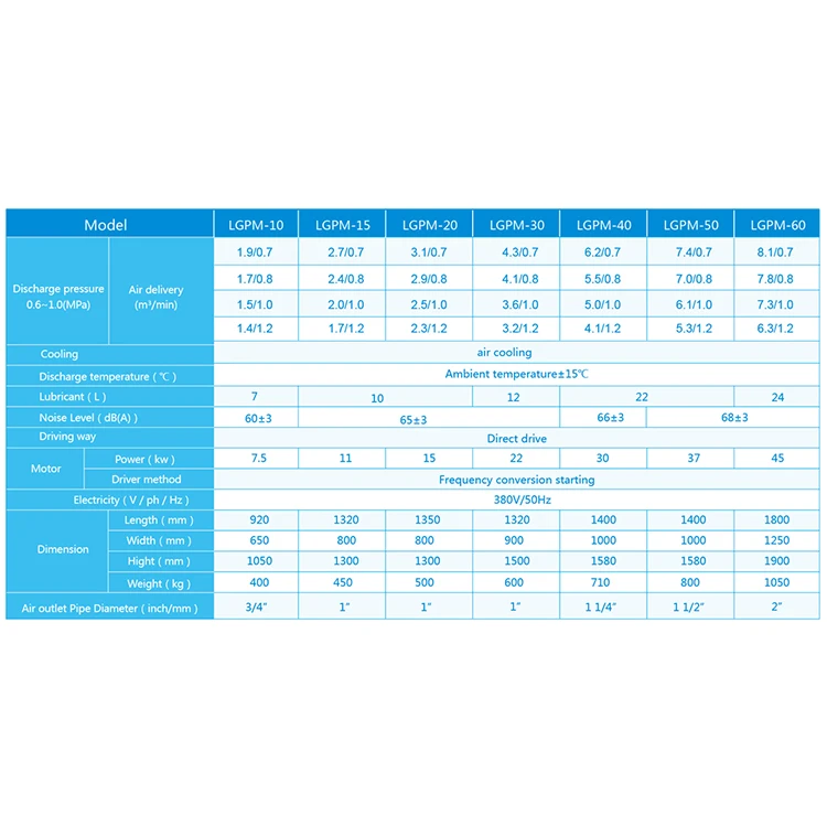 Product Name | LGPM-60 | Style | Permanent magnetic servo screw air compressor | |||