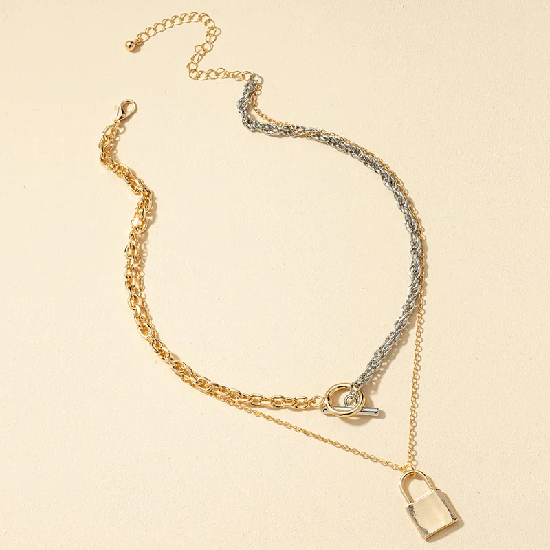 Двухслойное разноцветное ожерелье в стиле хип-хоп с многослойной цепочкой и круглым вырезом