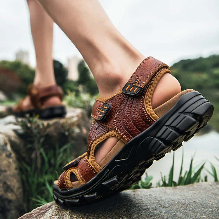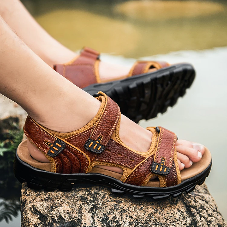 Новые дизайнерские кожаные мужские сандалии с мягкой подошвой