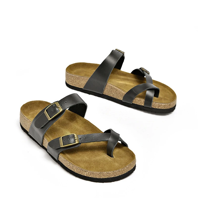 Оптовая продажа мужские на открытом воздухе из пробкового дерева; Повседневная обувь черного цвета из искусственной кожи с ремешком на щиколотке сандалии на плоской подошве; Мужские сандалии