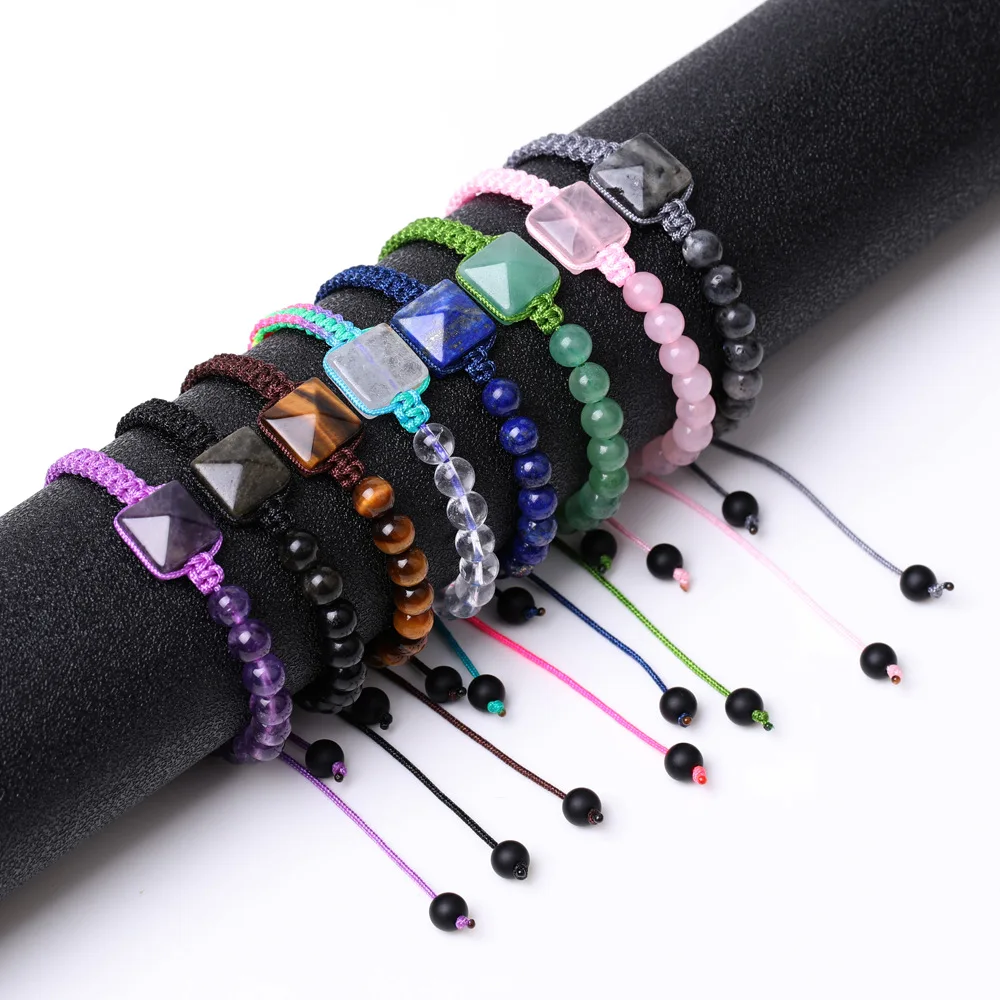 Разноцветные Хрустальные Бусины браслет в стиле бохо очаровательный макраме серый квадратный плетеный виде пирамиды ручной работы из натуральных камней