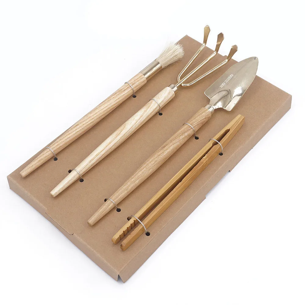 Оптовая продажа деревянная ручка для растений суккулентов мини-помещение детей сверхпрочный Золотой садовый ручной инструмент подарочный набор