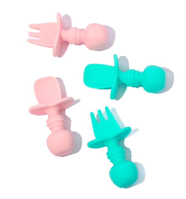 Силиконовая ложка и вилка для кормления младенцев, Нетоксичная ложка и вилка для кормления младенцев