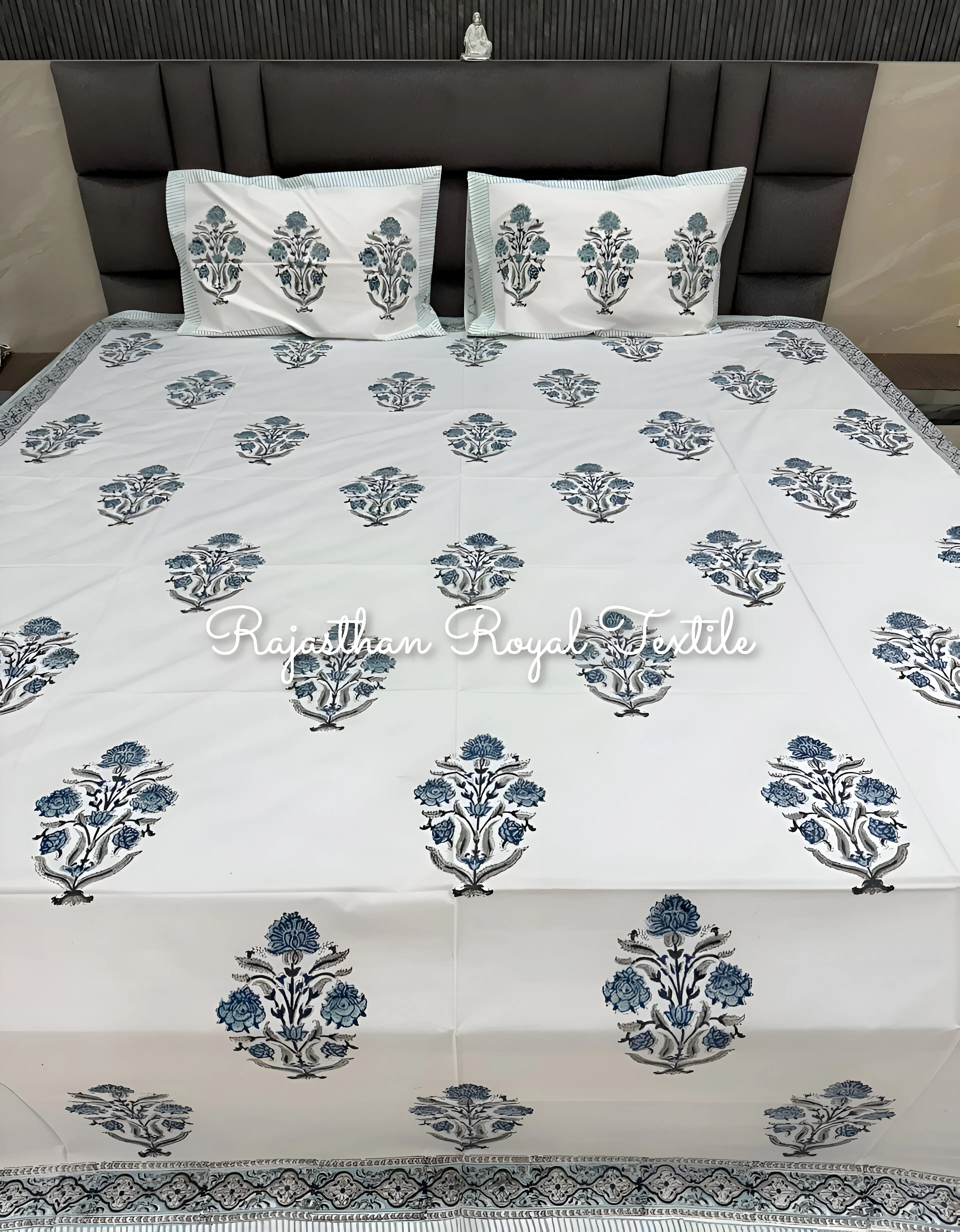 Премиум качество индийские простыни ручной работы с принтами из блоков Королевский синий цветочный Комплект постельного белья простыня наволочкой RRT 2 380,57-2 841,90 ₽