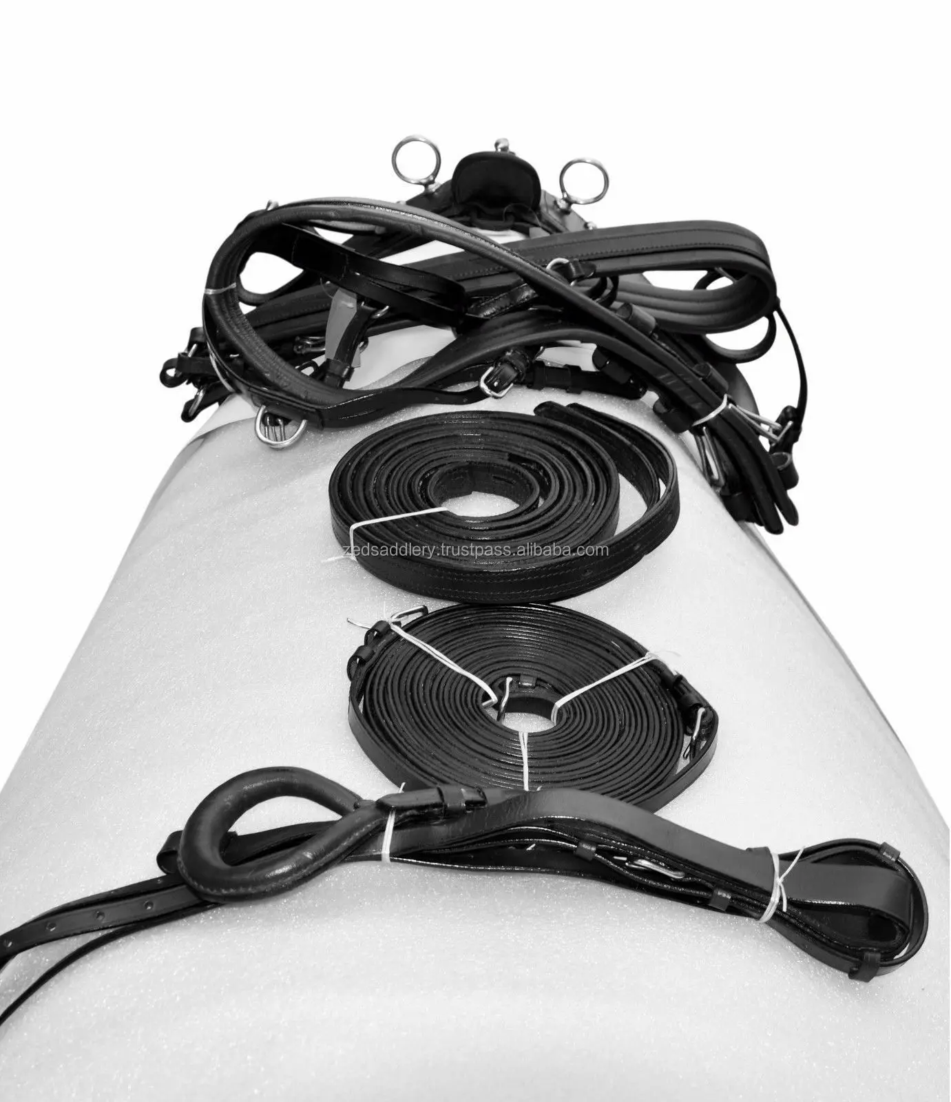 Управляйте своей лошадкой в стиле! Данный комплект одежды изготовлен из высококачественной барабан окрашенная кожа, полностью закрытые мягкое дно для того, чтобы обеспечить максимальный комфорт, точное прилегание. Кожа под обхватом и очень прочная Двухслойная верхняя лента обвязки для общей окружности. |