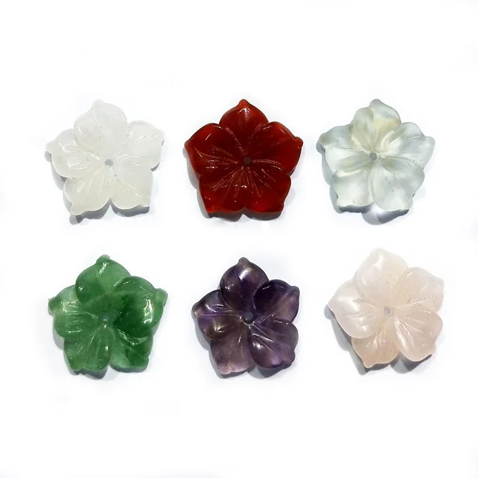 Натуральный свободный камень, резные 5 лепестков, Цветочный вырез, бусины, драгоценный камень, оптовая продажа, кристалл, кварц, резьба, цветы, гравировка, ювелирные изделия