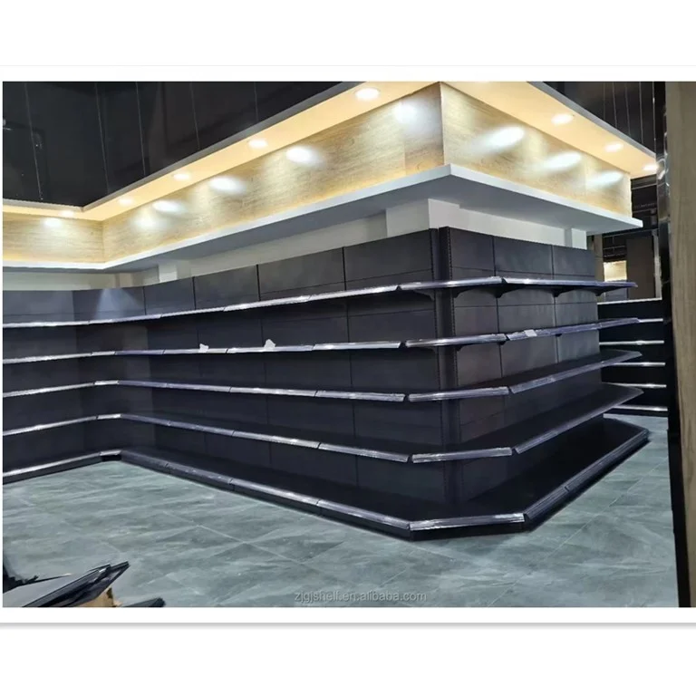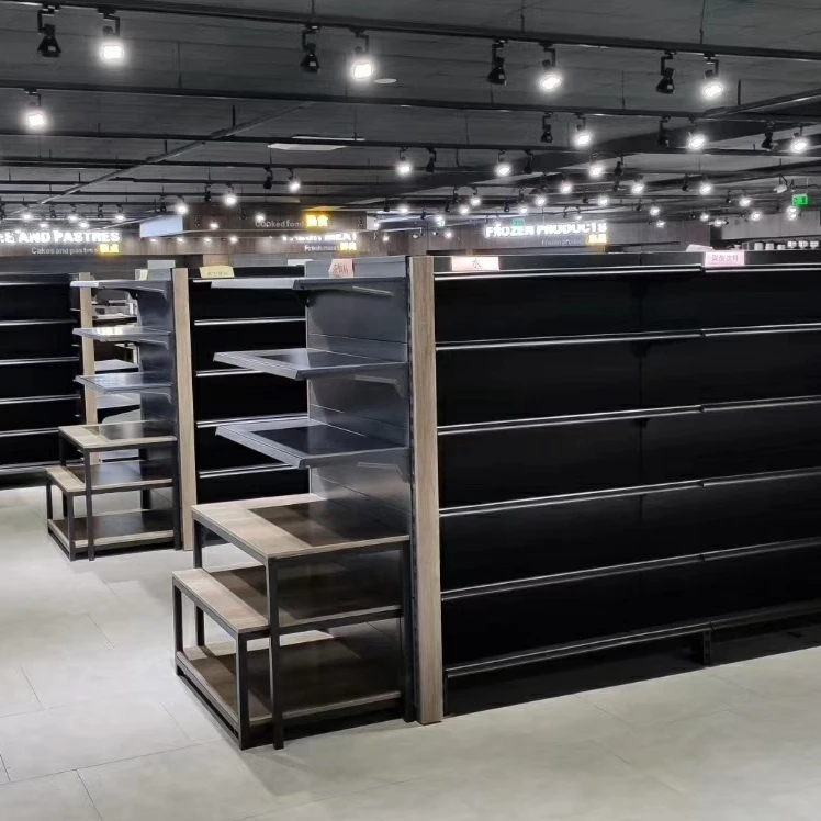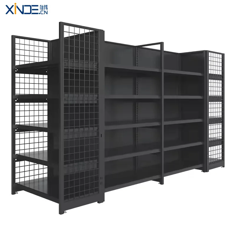 Недорогие стальные витринные полки для супермаркетов с двухсторонними Металлическими Полками для гондолы