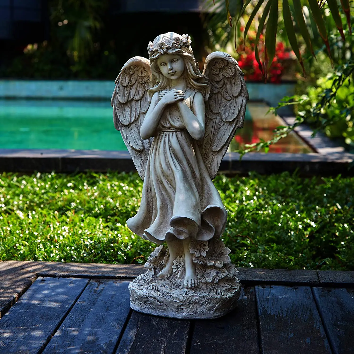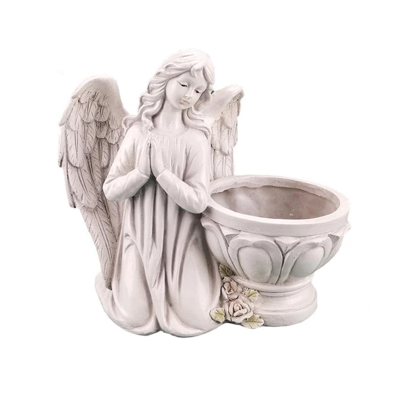 Light Up Angel Figurines and Statues Feature Battery with Powered Led Lights Timer Resin Statue Sculpture Outdoor