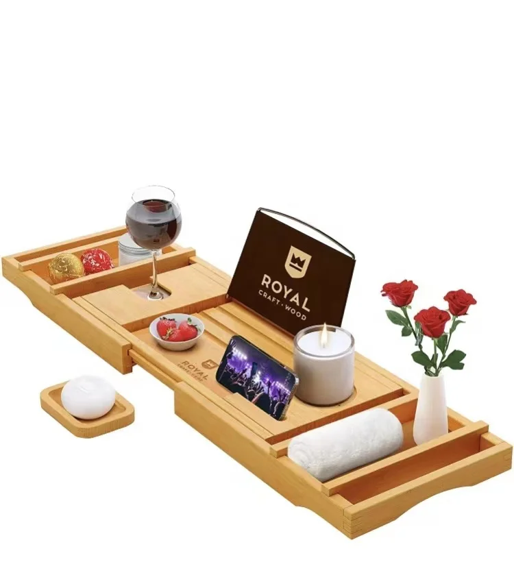 Оптовая продажа Бамбуковая роскошная ванна Caddy бамбуковый поднос для ванны с расширенными краями органайзер
