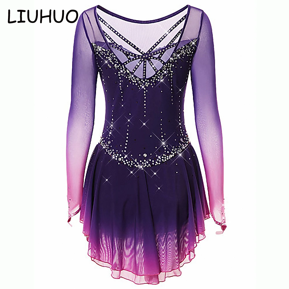 Платье для фигурного катания Женская юбка с высокой и низкой талией темно-серая эластичная из спандекса открытой спиной на коньках
