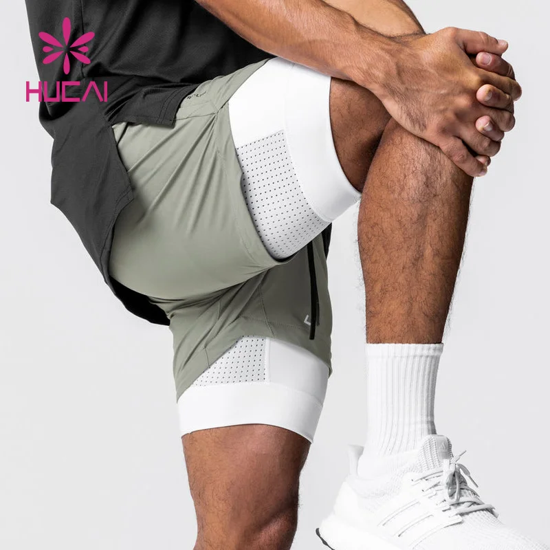 OEM выстроились двойной слой карманы спортивные нейлон изготовленным на заказ логосом 5 дюймов тренировки 2 в 1 мужские спортивные шорты для мужчин
