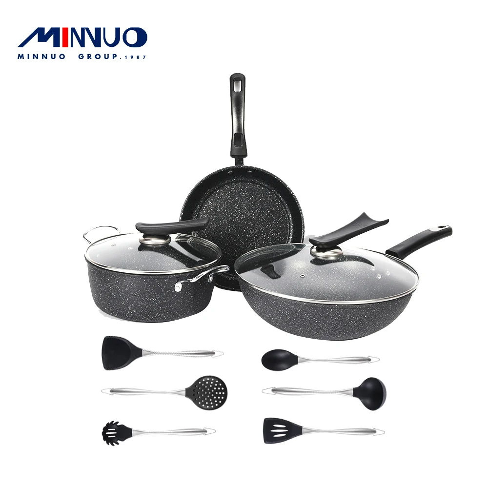 Product name | 5pcs Nonstick granite cookware set marble with wooden handles suitable for all cooker |