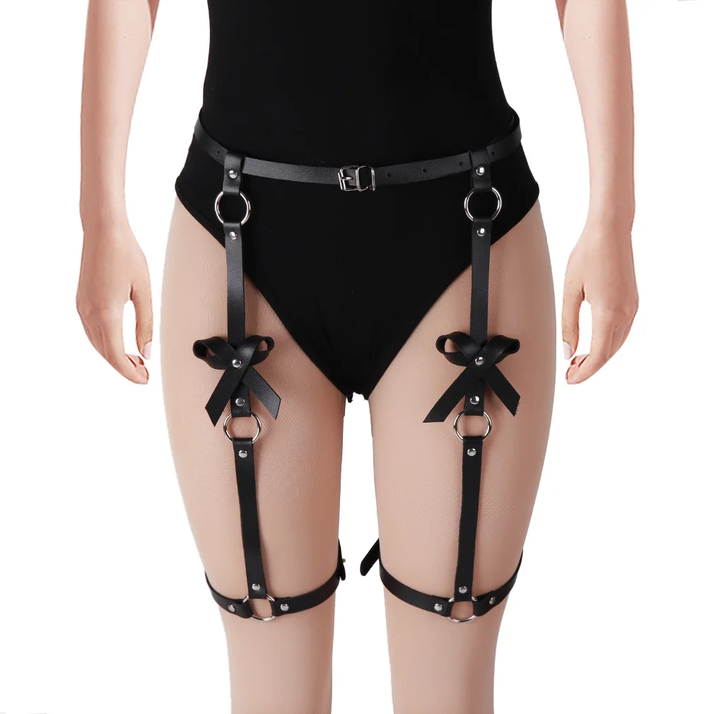 Кожаные подвязки Goth с бантом для ног, ремешок для тела, портупея, пояс, фетиш, женское белье, бондаж на талию, клетка, портупея, эротический пояс, БДСМ