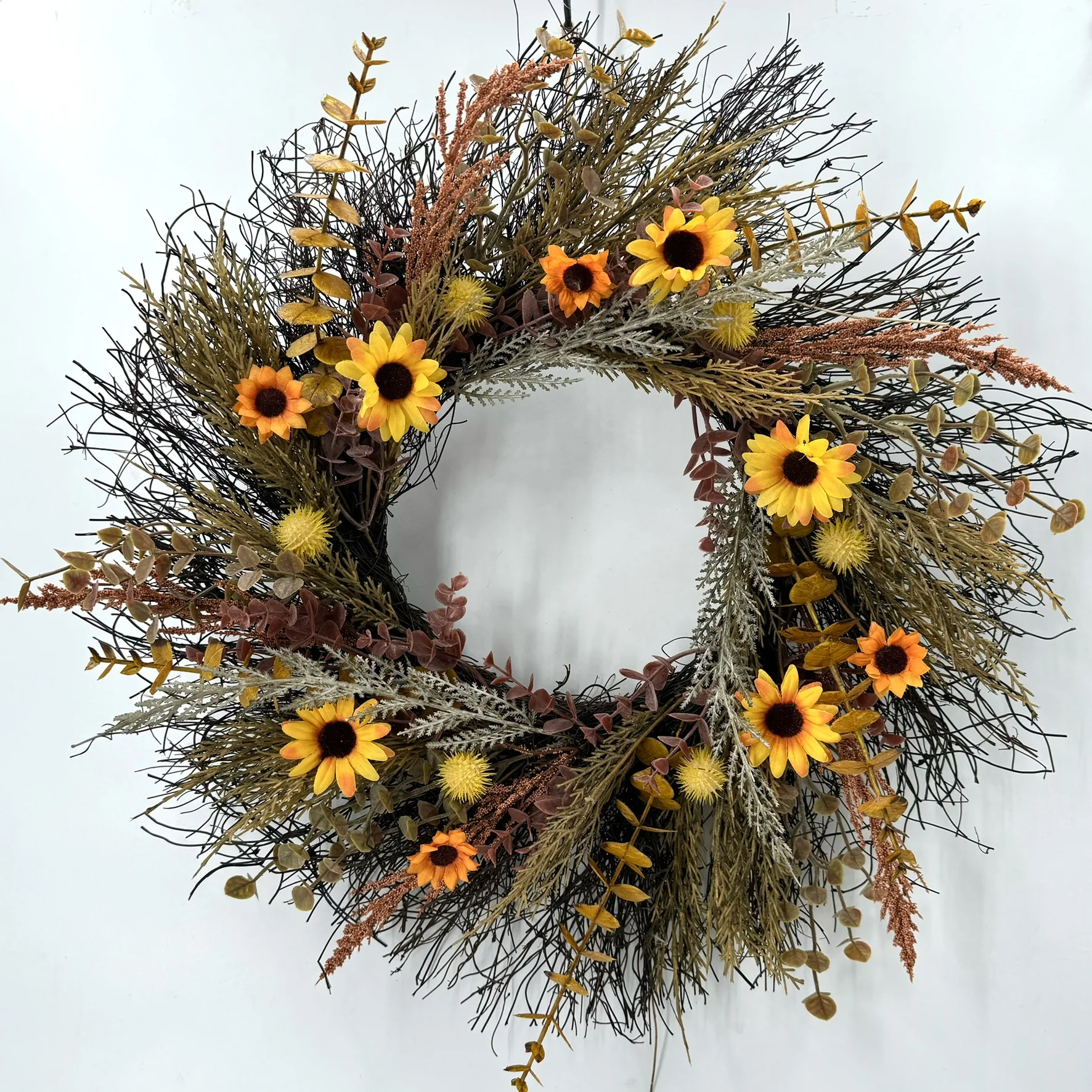 Осенний венок ручной работы с подсолнечником: искусственный для празднования Дня благодарения и праздника урожая