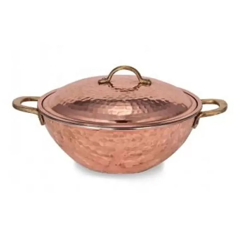 Медная кастрюля для вок ручной работы 26 см с крышкой латунная ручка Аутентичная традиционная кухня Оловянное медное