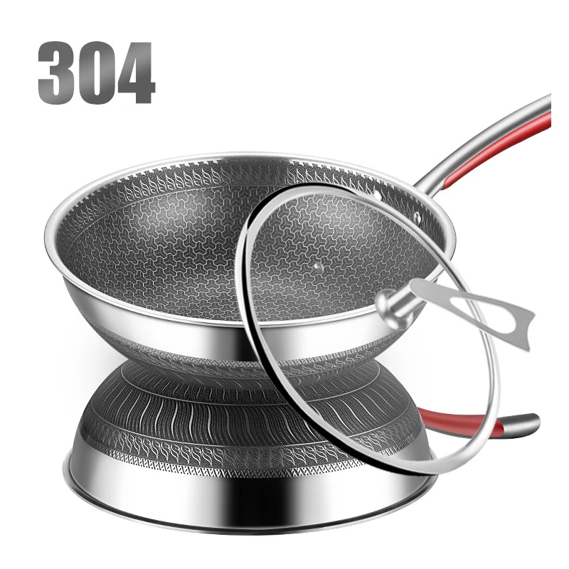 32 см/34 см 304 нержавеющая сталь три слоя вок двухсторонний экран соты с антипригарным