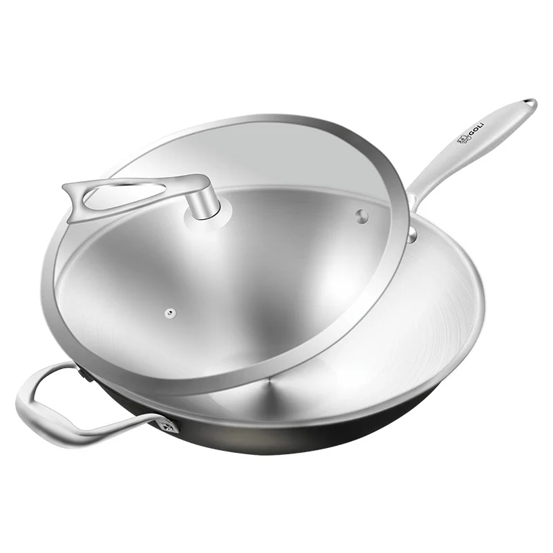Трехслойная кастрюля для супа из нержавеющей стали Бездымная и антипригарная Кастрюля ВОК с