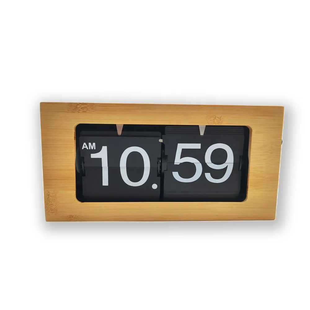 Откидные часы с отображением времени автоматическое переворачивание страниц Прочное деревянное бамбуковое безмолвное креативное настольное украшение